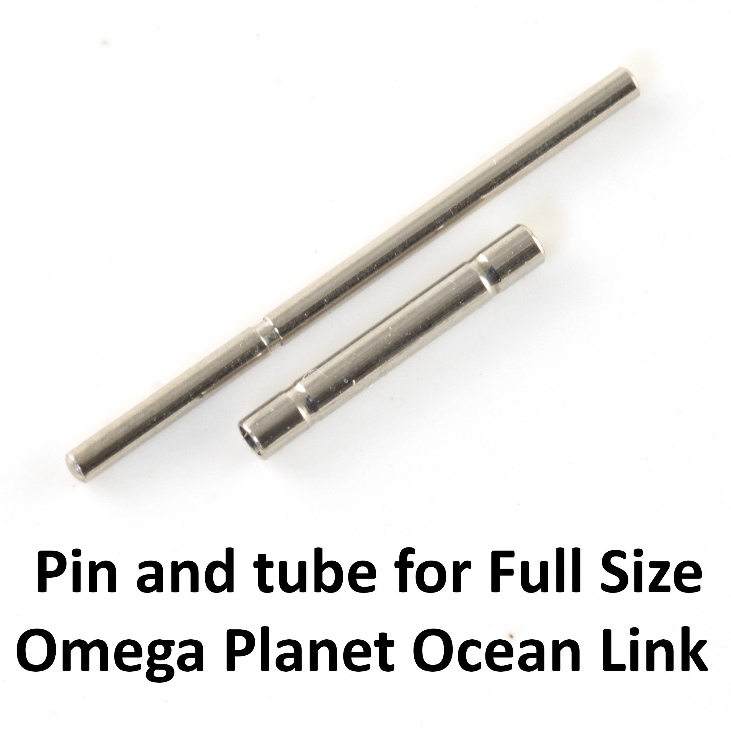 This spare pin and tube set is a high-quality compatible replacement designed specifically to fit Omega Planet Ocean 45.5mm watch links (these links are 20mm wide where they connect to the clasp). These pins and collars were not made by Omega but are high quality parts made in the UK to provide a reliable fit for the specified bracelet models.
